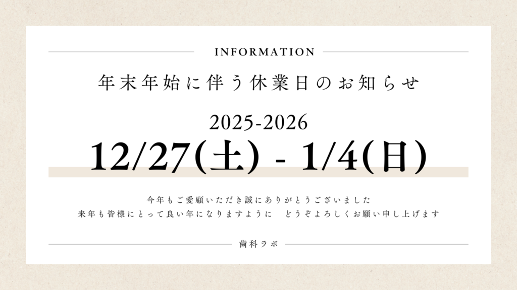 歯科ラボは以下の期間、年末年始休業とさせて頂きます。
